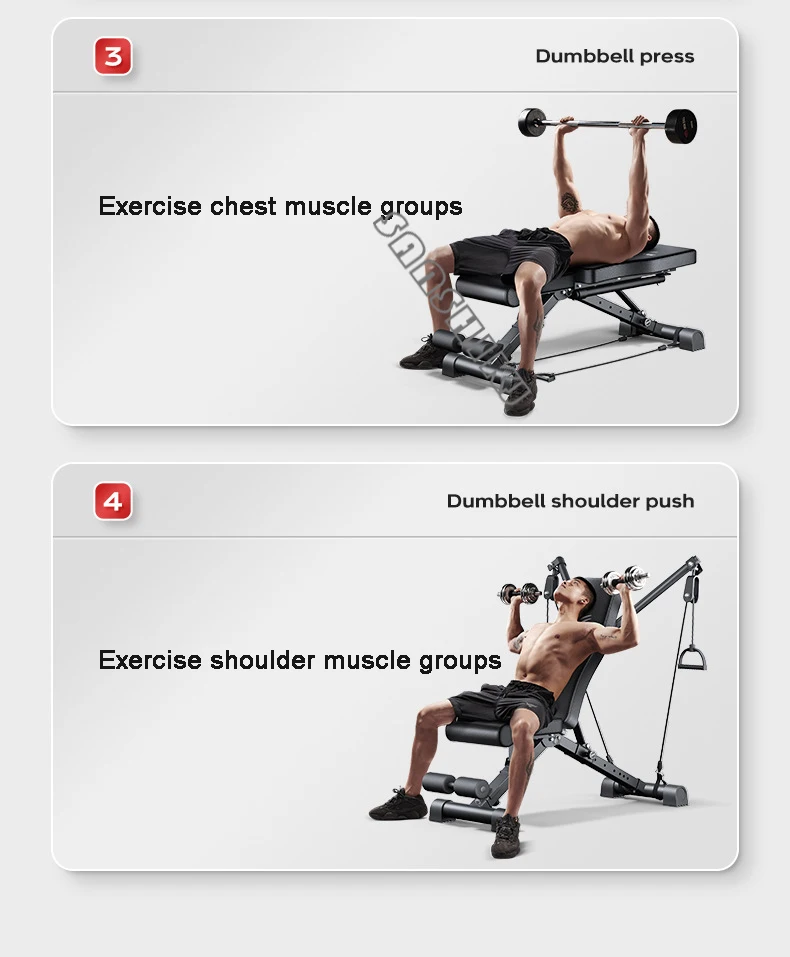 ●Function: Flying bird sandwiching chest, Dumbbell stool, weight lifting bed, Roman chair, supine boardPackage Content: