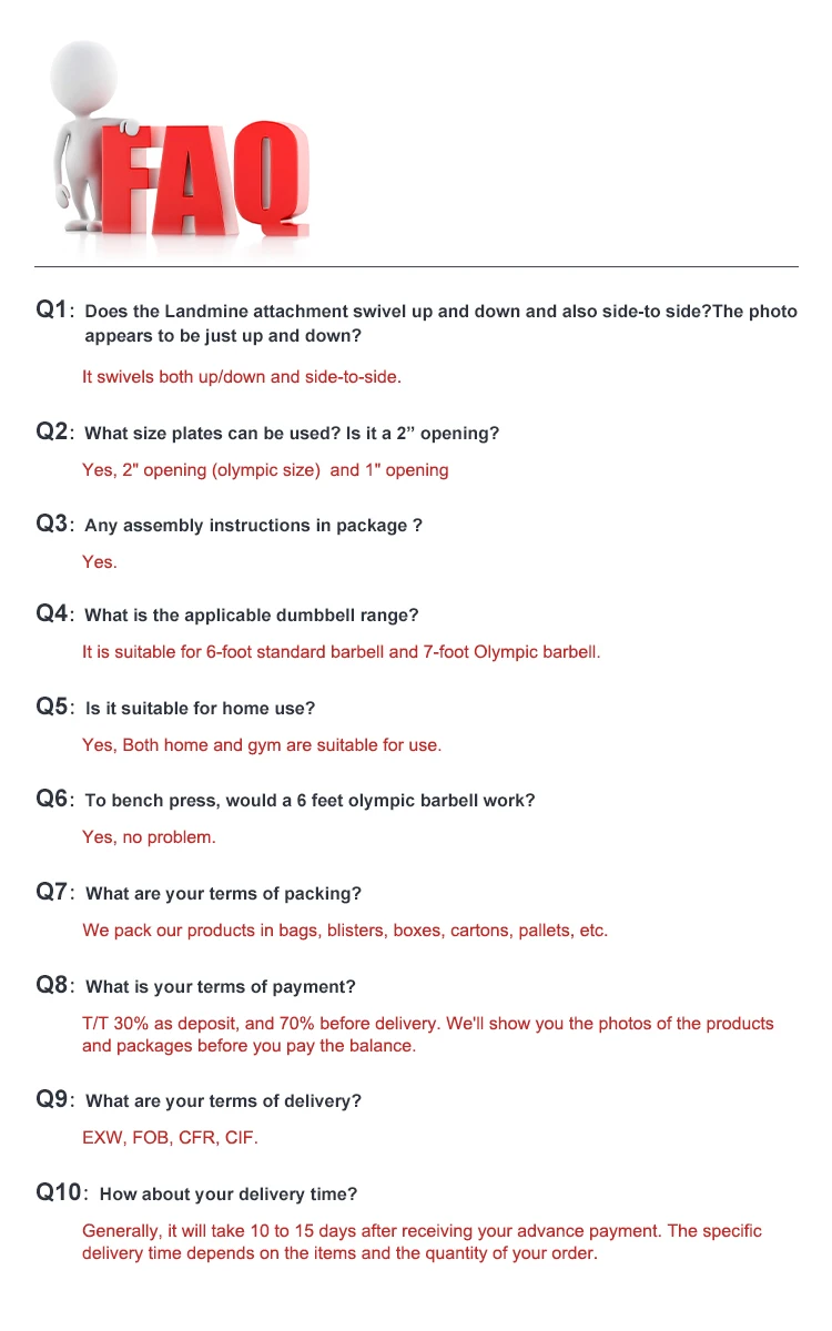 Weight 106KG Material Steel Tube Packaging 1set/3 ctn Deliery time 15-45 Dayssquat rack smithweight:106kgGW:110kgsize:1830*1196*2147mmpacking:1 set/3ctnA:2130*465*120mmB:920*475*165mmC:1380*476*175mmbearing:700kgmoq:1setCustomizable logoYiwu Jianyi Sports Co., Ltd. is a professional manufacturer of dumbbells barbells, plates, benches,home equipments and etc. We have a sports factory for 15 years, providing you with advanced equipment and perfect after-sales service; We also have our own overseas warehouse to support fast delivery and drop shipment. At the same time, We have rich experience in export, and have successfully supported the growth of many online clients by providing trend forecasting, one-stop procurement solutions and strict quality control.* Cutomization Acceptable /print or paste label on carton* Wooden palletFumigation-free export pallet* Woven bag+pipe, easy carry and protect well.